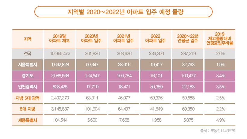 다만, KB금융그룹의 2021년 부동산 보고서를 보면, 설문조사에 참여한 중개업소 및 시장 전문가 대부분이 올해에도 집값이 오를 것으로 전망하고 있습니다. 전세를 구하지 못하는 이들이 매수세로 전환했음도 시장 공급물량이 부족하다는 것을 가장 큰 이유로 뽑았습니다. 사실 부동산 114에 따르면 전국 입주 예정 물량은 2021년 26.4만 호, 2022년 23.6만 호로, 작년 입주 물량 36.2만 호 대비 각각 9.8만 호(27%↓), 12.6만 호(35%↓)로 감소를 예측하고 있습니다. 올해 서울 아파트 입주 물량도 2만 8,853가구로 2020년 4만9,860가구의 60% 수준에도 못 미칩니다. 게다가, 아파트 분양물량도 감소할 것으로 예상되는데, 초과 이익환수제와 분양가상한제로 서울을 비롯한 규제지역은 재건축사업의 악화로 분양 일정을 연기하는 사업장이 늘었기 때문입니다.