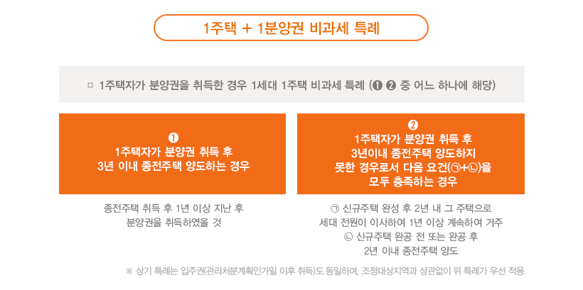 이는 기존 주택 보유자가 신축 주택으로 이사하는 과정에서 일시적으로 1주택 1분양권이 된 것이므로 양도세 상 다주택자에 부과하는 불이익을 주지 않겠다는 취지입니다.