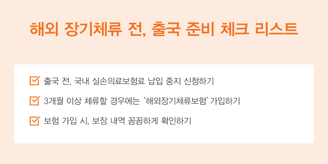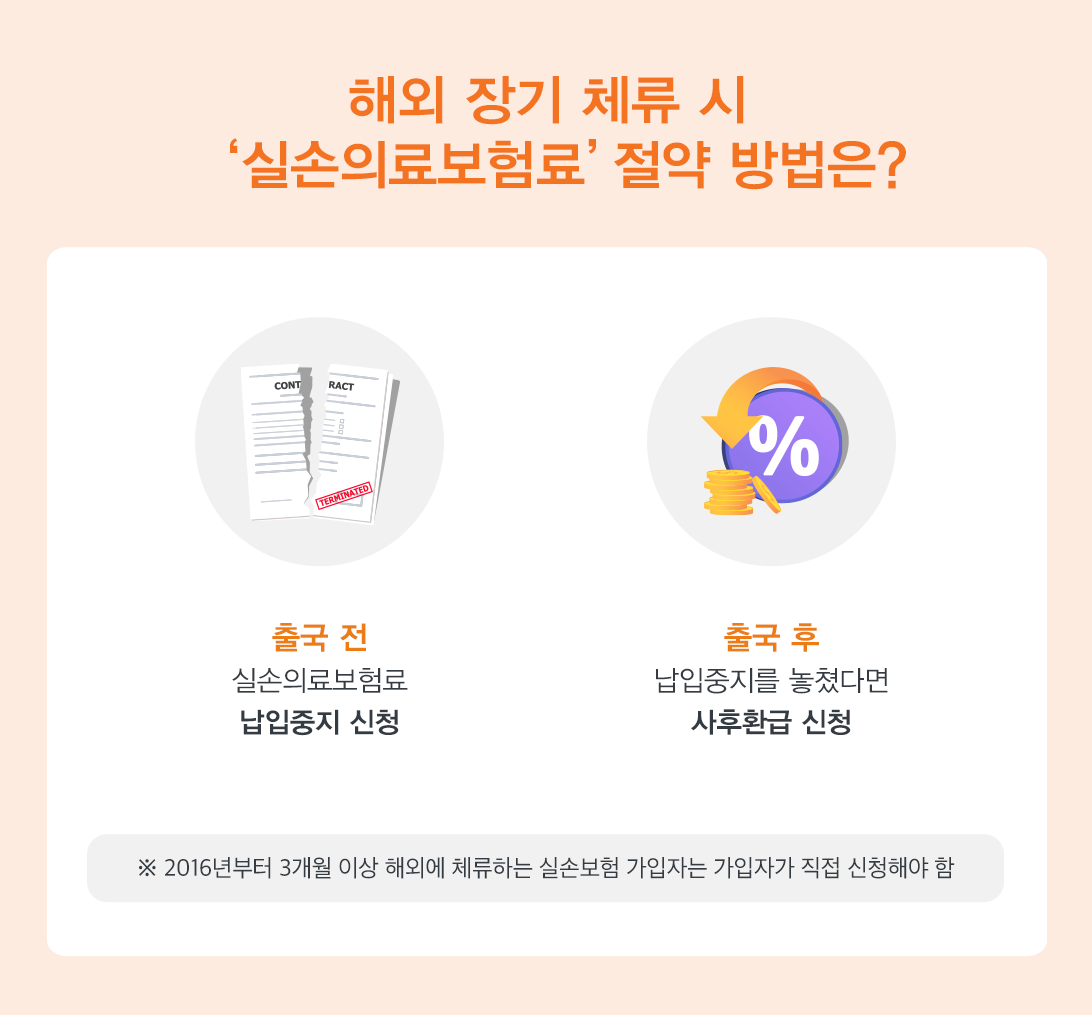 이처럼, 해외 장기 체류 시 국내 ‘실손의료보험료’를 매달 납입하는 것은 손해인데요.