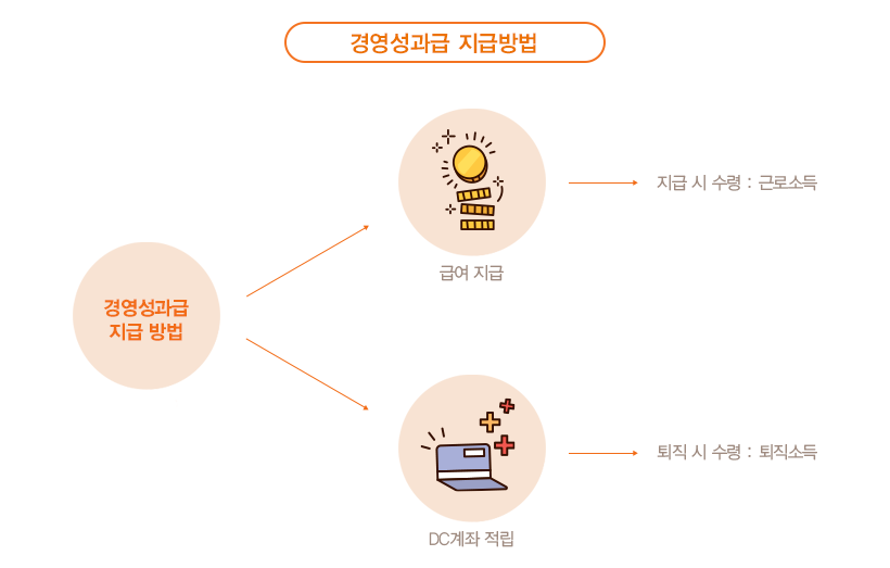 최근 경영성과급의 일정비율을 급여(근로소득)으로 수령하는 대신 DC계좌에 적립하고, 퇴직시 퇴직금(퇴직소득)으로 받을 수 있는 ‘경영성과급 DC제도’를 도입하는 기업이 적지 않습니다. 필자의 회사도 2018년부터 시행하고 있는데, 이는 임직원의 안정된 노후준비와 세금 절감을 목적으로 하고 있습니다.