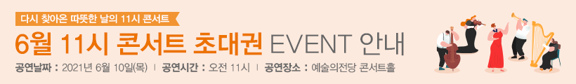▶ 세계인의 극찬을 받은 오페라가 궁금하시다면, 6월 11시 콘서트를 기억해주세요!