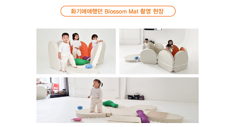 보육원에 기증되기 전, 모델 기부에 차명한 일반 영아들과 함께 진행한 촬영 현장에서 ‘Blossom Mat’의 실제 모습을 마주할 수 있었죠. 매트를 보자마자 “와아!” 하고 달려가는 친구들. 매트 안을 들여다보고, 촉감 주머니를 만져보고, 나아가 푹신한 매트에 벌러덩 눕기도 하는 모습 등은. 굳이 매트 사용설명서를 디테일하게 알려주지 않아도, 아주 자연스럽게 이루어지는 한 편의 놀이 같았습니다.