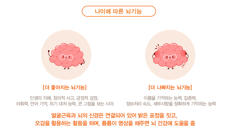 얼굴근육과 뇌의 신경은 연결돼 있으므로 밝은 표정을 짓고, 오감을 활용하는 활동을 하며, 틈틈이 명상을 해주면 뇌 건강에 도움이 된다고 합니다.