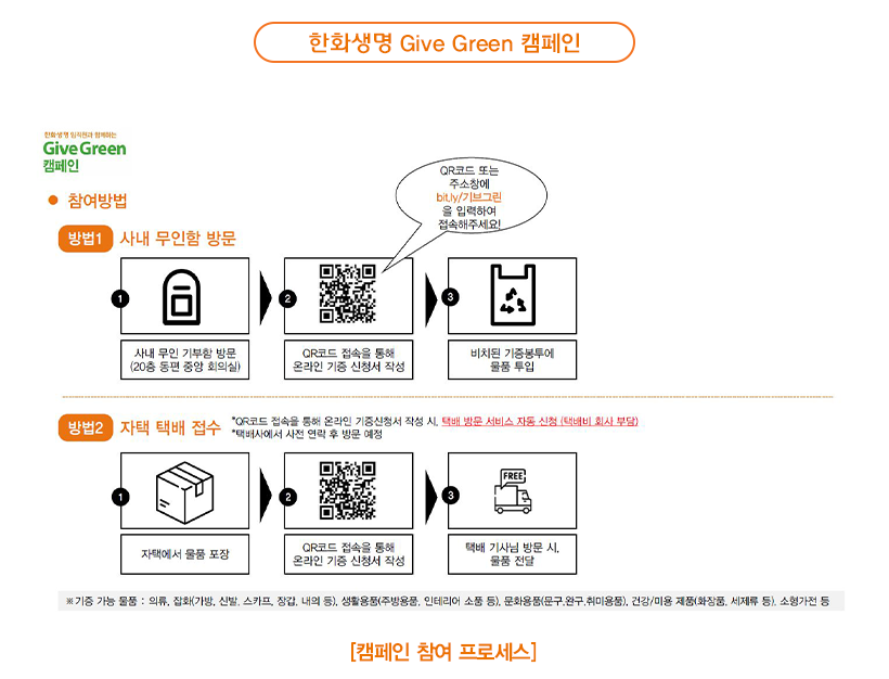 한화생명에서도 얼마 전 리사이클링과 관련해, 임직원 모두가 동참한 ‘Give Green’ 캠페인이 진행된 바 있습니다.