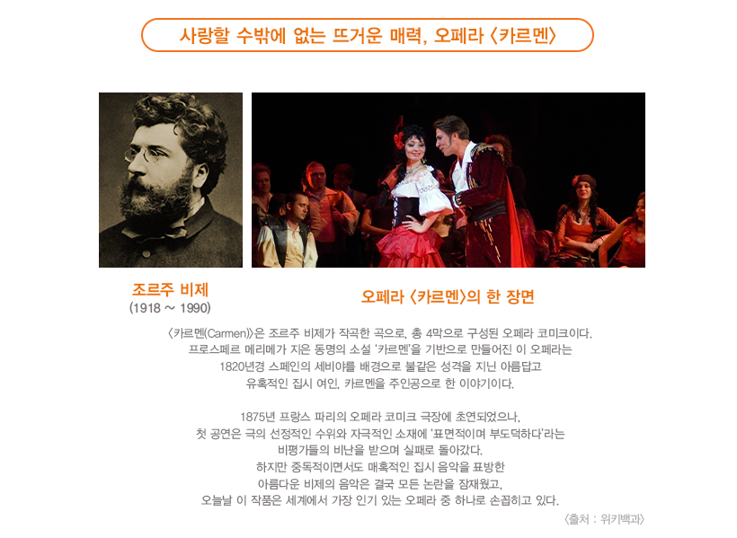 꽃피는 계절을 뒤로하고 여느 때보다 빠르게 찾아온 여름의 초엽, 한화생명 11시 콘서트도 함께 돌아왔습니다. 지난달 공연은 코로나 19의 여파로 인해 불가피하게 취소되었는데요. 이 아쉬움 덕분인지 다시 열린 11시 콘서트의 객석은 무더운 날씨에도 불구하고 관중의 뜨거운 기대와 열정으로 가득 찼습니다. 비제의 가장 유명한 오페라 <카르멘> 하이라이트를 선보인 6월 11시 콘서트, 뜨거운 여름 같았던 그 현장의 열기를 생생히 전해드리겠습니다.
