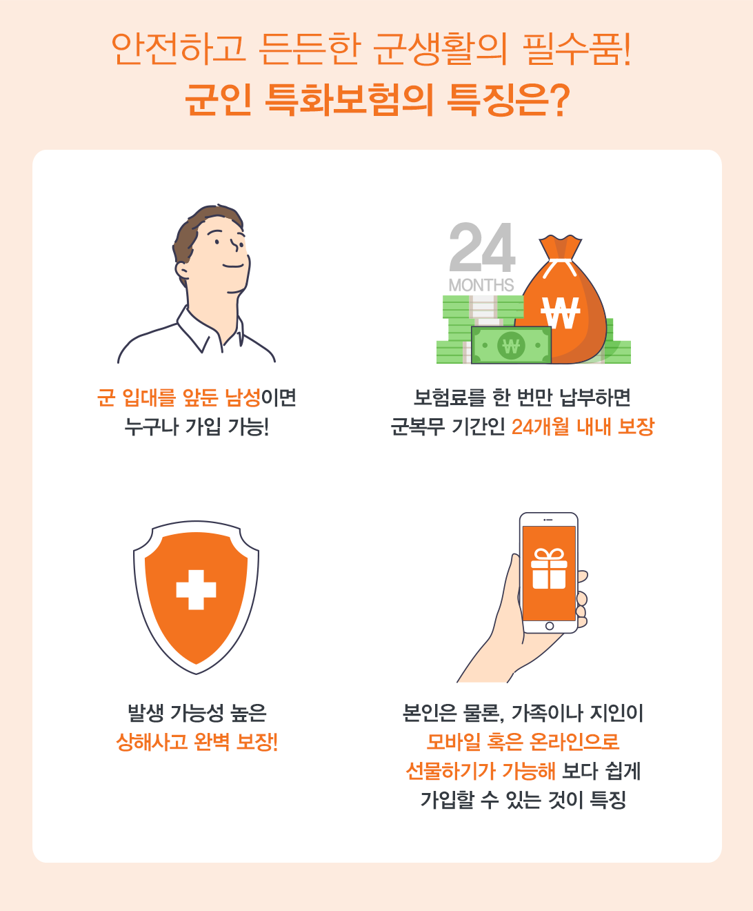 군인에게 꼭 맞춰 개발되었다는 군인 특화 보험! 가입하면 어떤 보장을 받을 수 있을까요?