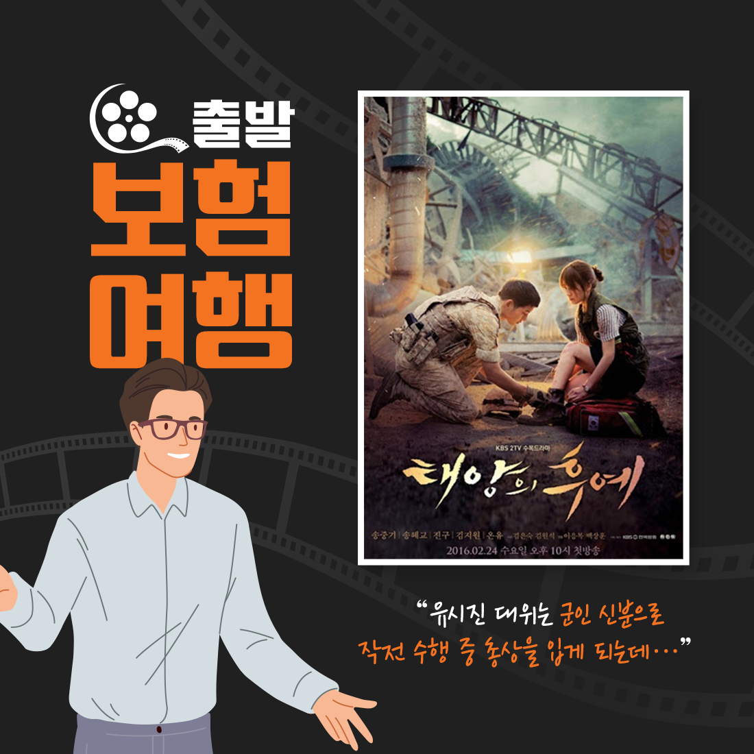 오늘은 시청률 40%에 육박했던 빅히트 드라마 <태양의 후예>와 함께 출발! 보험여행을 떠나보겠습니다!