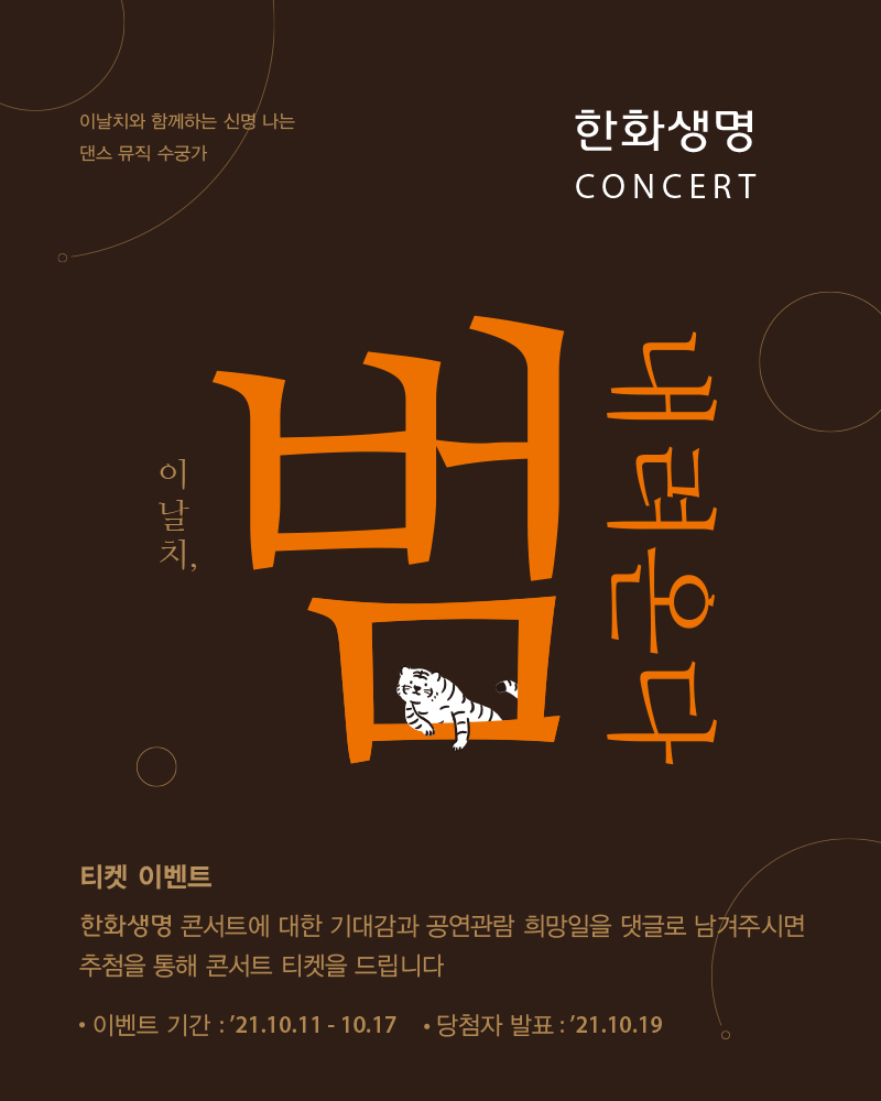 그러니 전석 무료 초청으로 관람 가능한 이번 공연에서 무대 가득 울려 퍼지는 21세기 판소리의 멋과 흥에 흠뻑 빠져보시길 바랍니다. 이날치가 <한화생명 콘서트: 이날치, 범 내려온다> 공연에서 선보일 ‘21세기 판소리’가 여러분의 마음속 들끓는 흥을 되살릴 것이라 굳게 믿습니다.