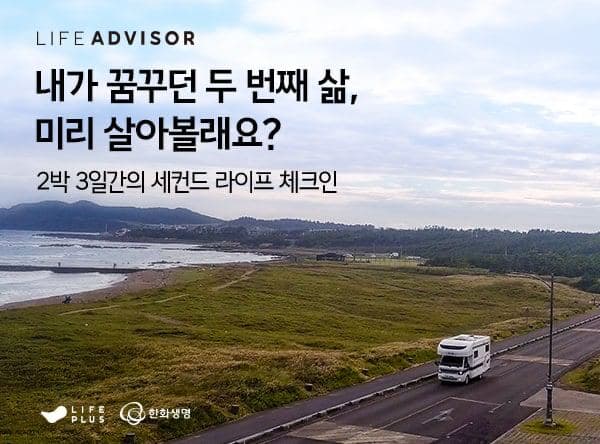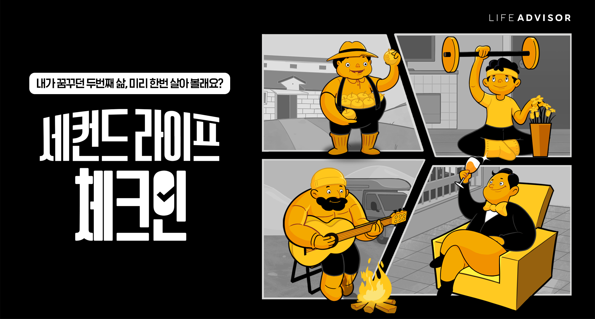 살아가며 반드시 맞이하는 삶의 중요한 순간에 전문성 있는 어드바이저가 크고 작은 서비스를 제공하며 삶의 풍요로운 경험을 제공하는 ‘라이프 어드바이저(LIFE ADVISOR) 캠페인. 1차 이벤트로 코로나로 인한 집콕 생활을 효율적으로 하기 위한 <스페이스 편>, 2차 이벤트로 LIFEPLUS 마라톤을 더 건강하게 잘 달리기 위한 <러닝 편>을 진행했습니다. 이번 3차 이벤트 <세컨드라이프 편>에서는 기존 경제 활동의 전환기를 맞는 두번째의 삶을 ‘세컨드라이프’로 정의하고 누구나 맞이하게 될 세컨드라이프를 잘 준비하기 위한 솔루션을 제공하려고 합니다.