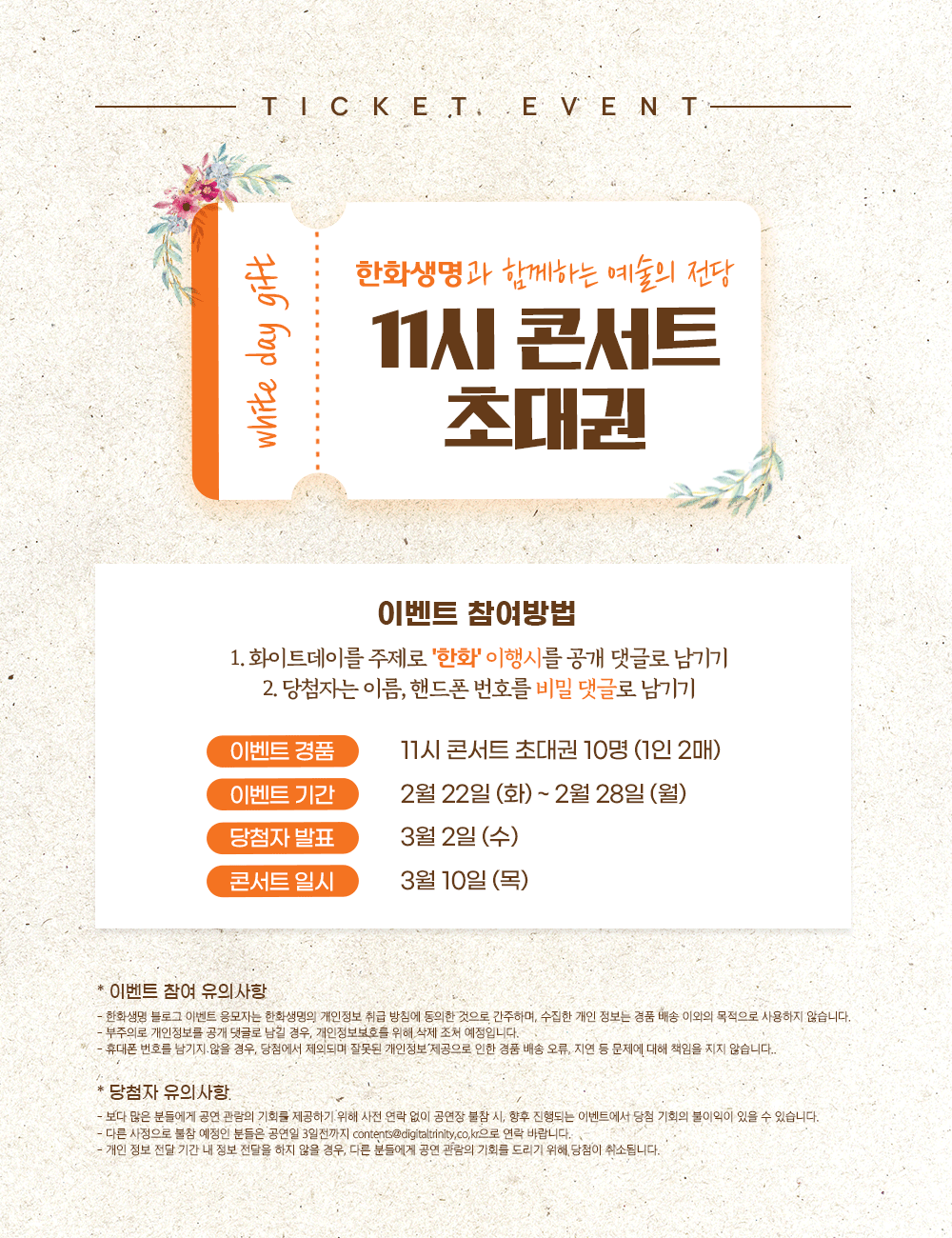 따뜻한 봄의 시작을 알리는 3월 10일 11시 콘서트