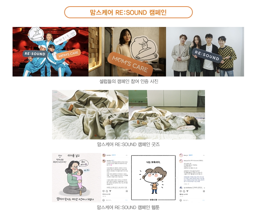 유명 뮤지션들 또한 흔쾌히 캠페인 취지에 공감하며 동참했는데요. 특히 락밴드 ‘몽니’의 리더 김신의 님은 자장가의 작사, 작곡, 가창에 참여하여 맘스케어 캠페인 음원으로 출시하였고, 음원 연주 영상을 SNS에 업로드하는 열의를 보이며 감동을 선사하기도 했습니다.