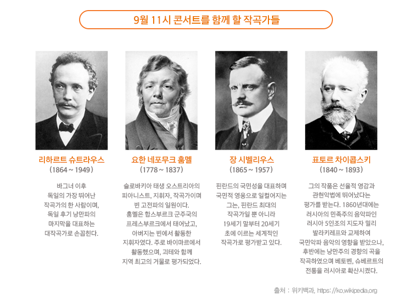 유난히도 힘들었던 8월을 지나 다가오는 추석의 풍성함을 한층 더 더해줄 ‘한화생명과 함께하는 예술의 전당 9월 11시 콘서트’가 돌아왔습니다. 깊고 아름다운 선율로 감동이 가득할 이번 공연을 지금부터 소개합니다.