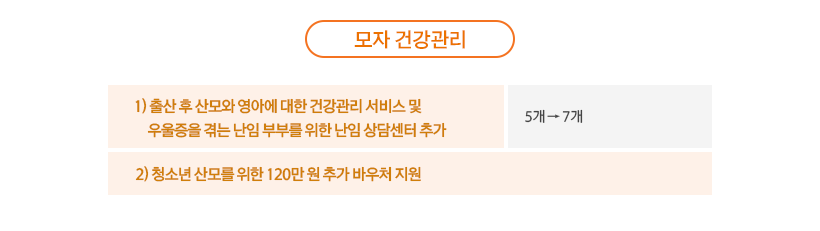 또한, 난임 부부 등을 지원하는 ‘모자 건강관리’ 관련 예산은 88억 원에서 97억 원으로 늘어난다고 하는데요. 자세한 내용은 아래와 같습니다.