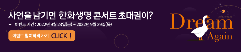선선한 가을 밤 2022 한화생명 콘서트 ‘Dream Again’에서 사랑하는 사람들과 함께 잊어버린 꿈을 찾아보세요.