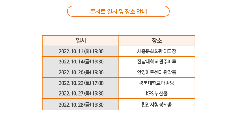 2022 한화생명 콘서트 ‘Dream Again’ 은 서울을 시작으로 광주, 안양, 대구, 부산, 천안 등 총 6회의 공연으로 준비되어 있으며 모든 공연은 무료 초청으로 진행됩니다.