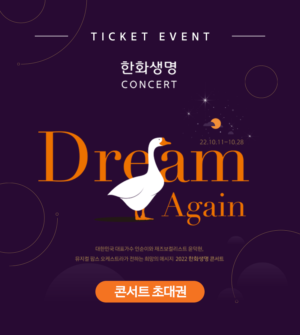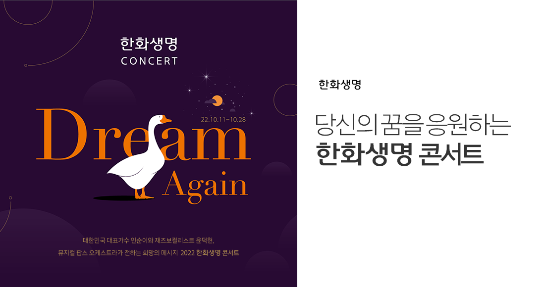 선선한 가을 밤 2022 한화생명 콘서트 ‘Dream Again’에서 사랑하는 사람들과 함께 잊어버린 꿈을 찾아보세요.