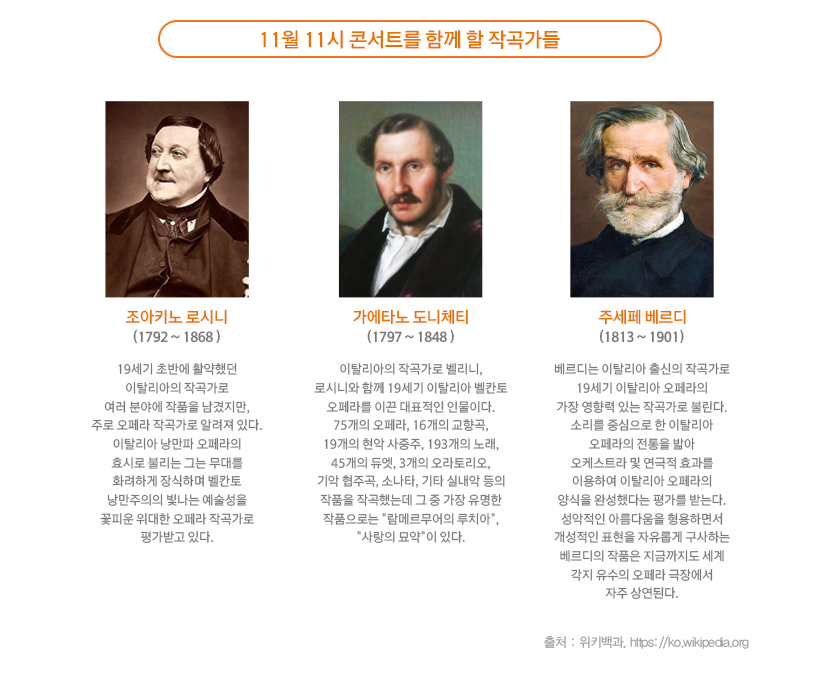 ▶깊은 감성을 자극하는 가을 오페라, 11월 11시 콘서트