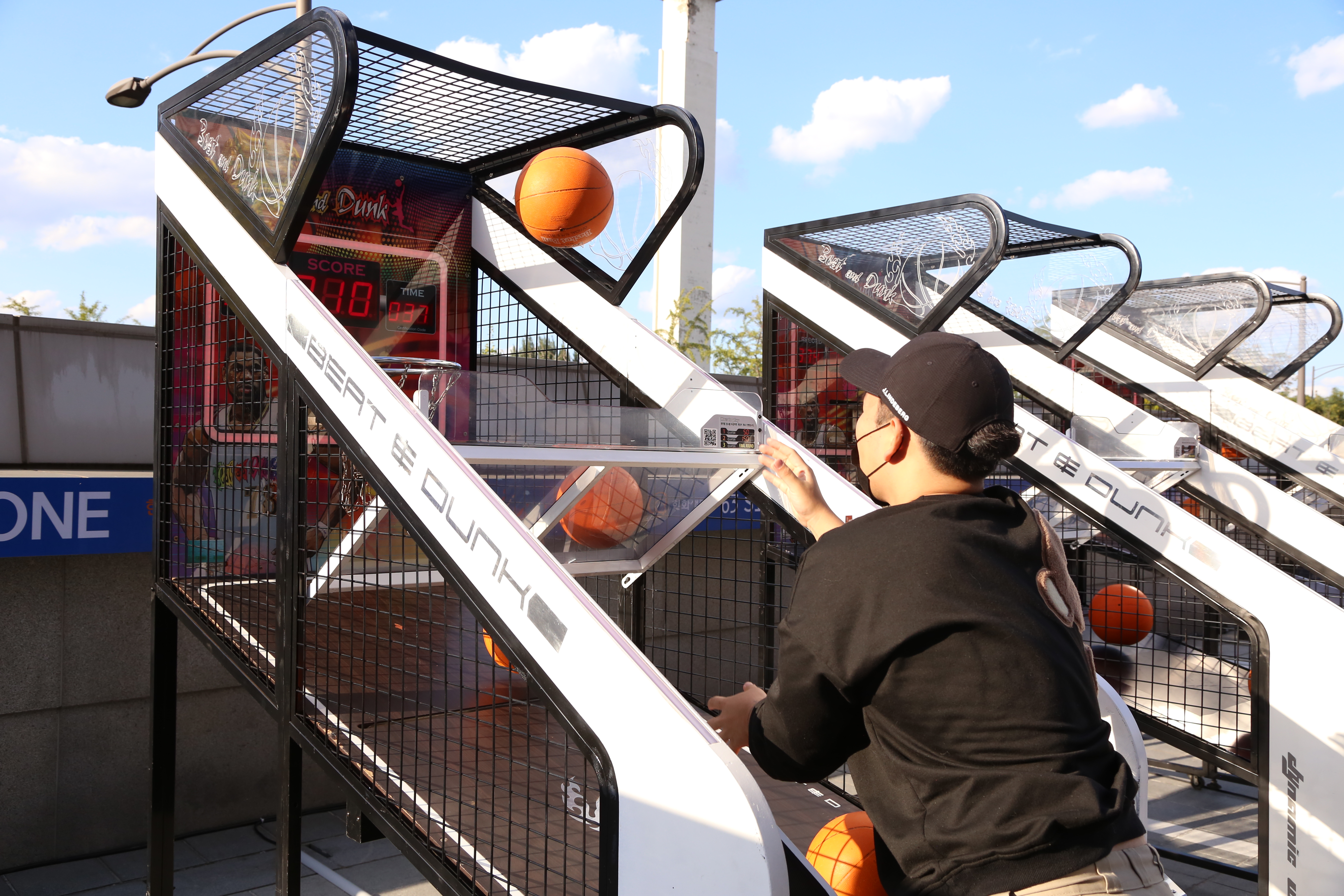 맛있는 음식으로 든든하게 배를 채웠다면 이제 신나게 놀아 볼 시간인데요! 한국인이라면 빼놓을 수 없는 인증샷부터 찍어볼까요? 63 SIGNATURE LOUNGE에는 네컷 사진을 찍을 수 있는 ‘셀프 시네마 포토박스’가 준비되어 있었어요! 요즘 인싸라면 네컷 사진은 필수! 함께한 소중한 사람과의 소중한 추억을 사진에 남기고 다음 플레이 존으로 향해볼까요? 영화관 옆에 꼭 있는 또 한 가지! 바로 오락실인데요! 포토박스 옆에는 두더지 게임, 농구게임 같이 신나게 몸을 쓰는 게임과 테트리스나 갤러그 등 추억의 게임을 할 수 있는 오락기들도 준비되어 있었습니다! 그럼 마음의 준비를 하고 예전 실력 발휘를 한번 해 볼까요?