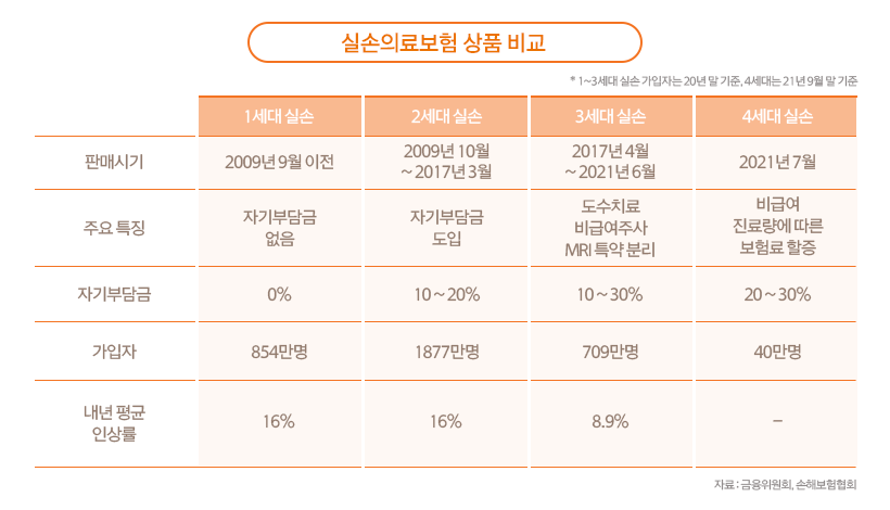 세대별 실손의료보험의 특징