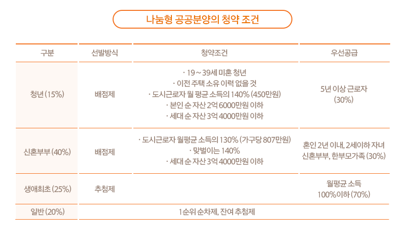 그렇다면 나눔형 공공분양의 청약 조건은 어떨까요?
