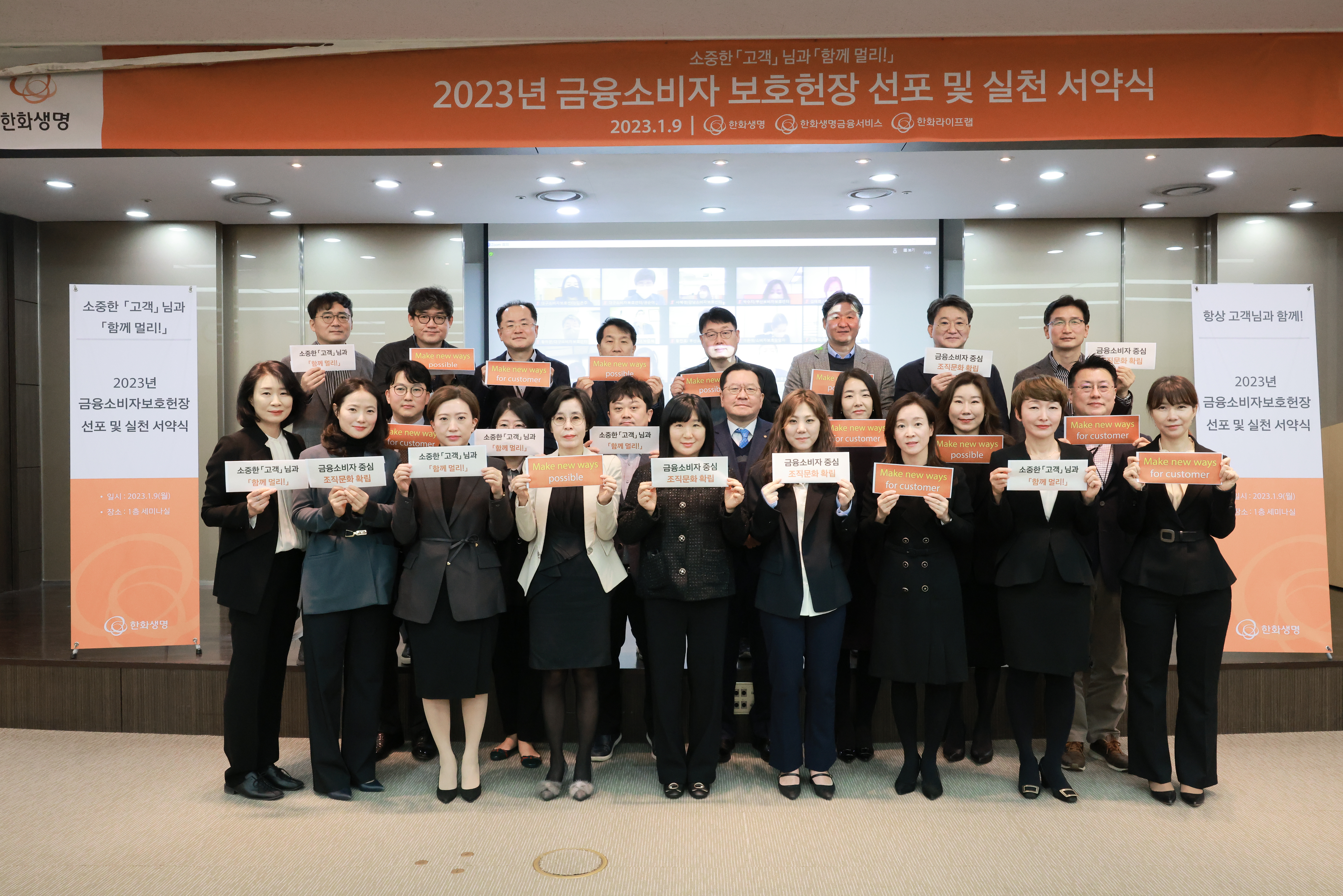 지난해, 올해의 소비자중심경영(CCM) 부문 공정거래위원장 표창장을 수상한 바 있는 한화생명은 2023년의 시작과 함께 실천 서약식을 진행하며 금융소비자의 권익 보호를 기업의 존속 및 성장 최우선 가치로 삼았는데요. 이번 서약식을 통해 한화생명은 소비자중심경영을 선도하는 기업으로 자리매김하고, ‘함께 멀리’의 경영 철학을 바탕으로 고객 가치 제고를 위한 책임을 다짐하였습니다.