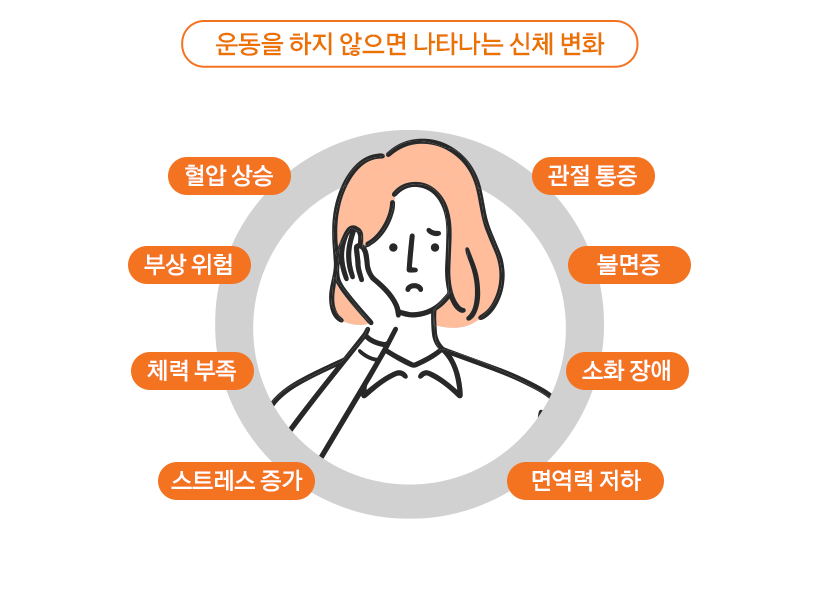 과도하게 신체를 움직였을 때 피곤함을 느끼는 경우가 일반적인데요. 이때 우리는 휴식을 통해 일시적인 피로감을 해소하게 됩니다. 하지만 운동이 부족한 경우에도 만성적인 피로를 느낄 수 있다는 사실, 알고 계셨나요? 신체의 움직임이 부족하면 생리적 기능이 급격히 떨어지게 되며, 근육과 인대의 약화, 심박출량의 감소, 폐 기능 감소, 수축기 혈압 감소, 관절의 경직에 의한 신체 활동 제한 등의 증상이 나타날 수 있기 때문입니다.