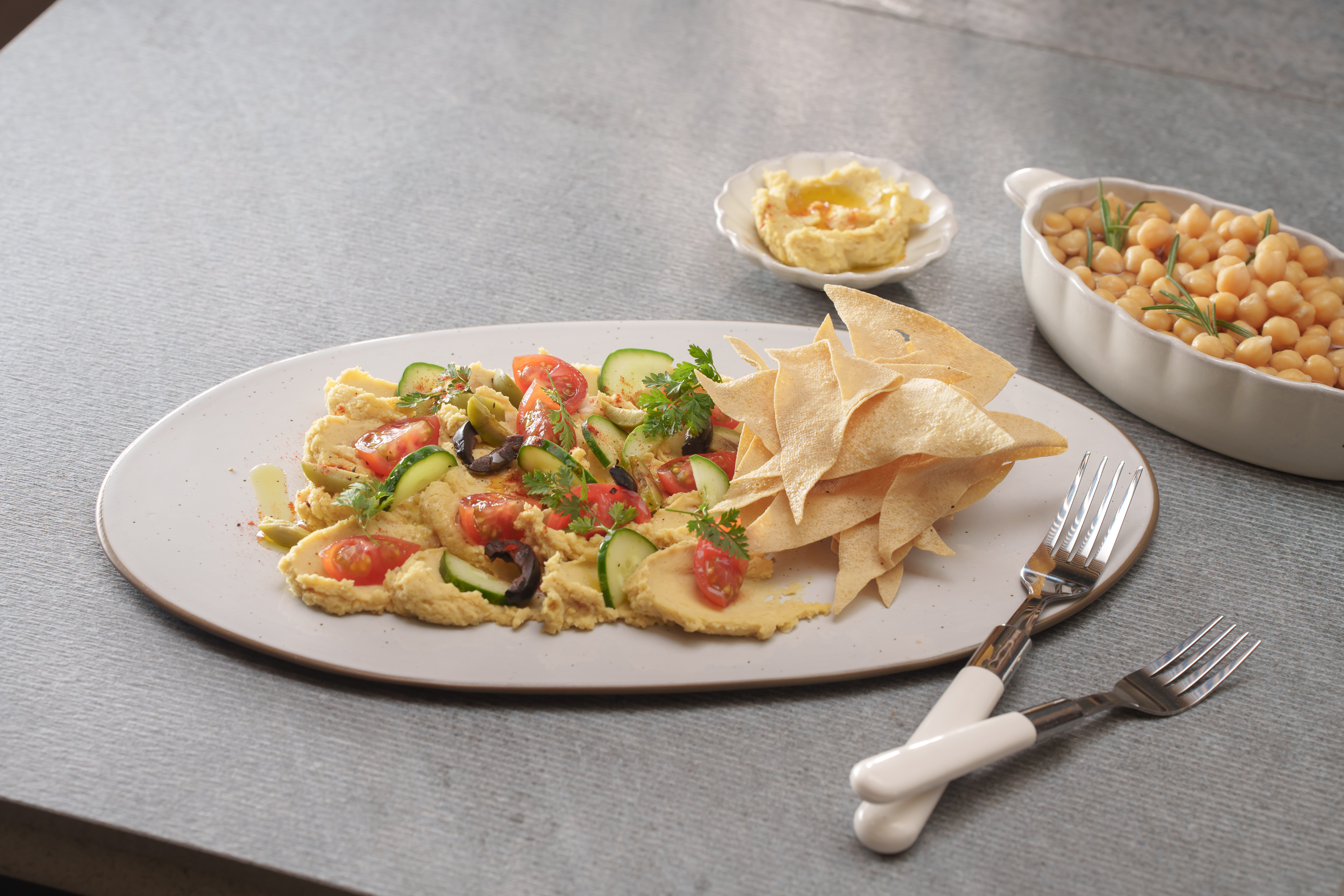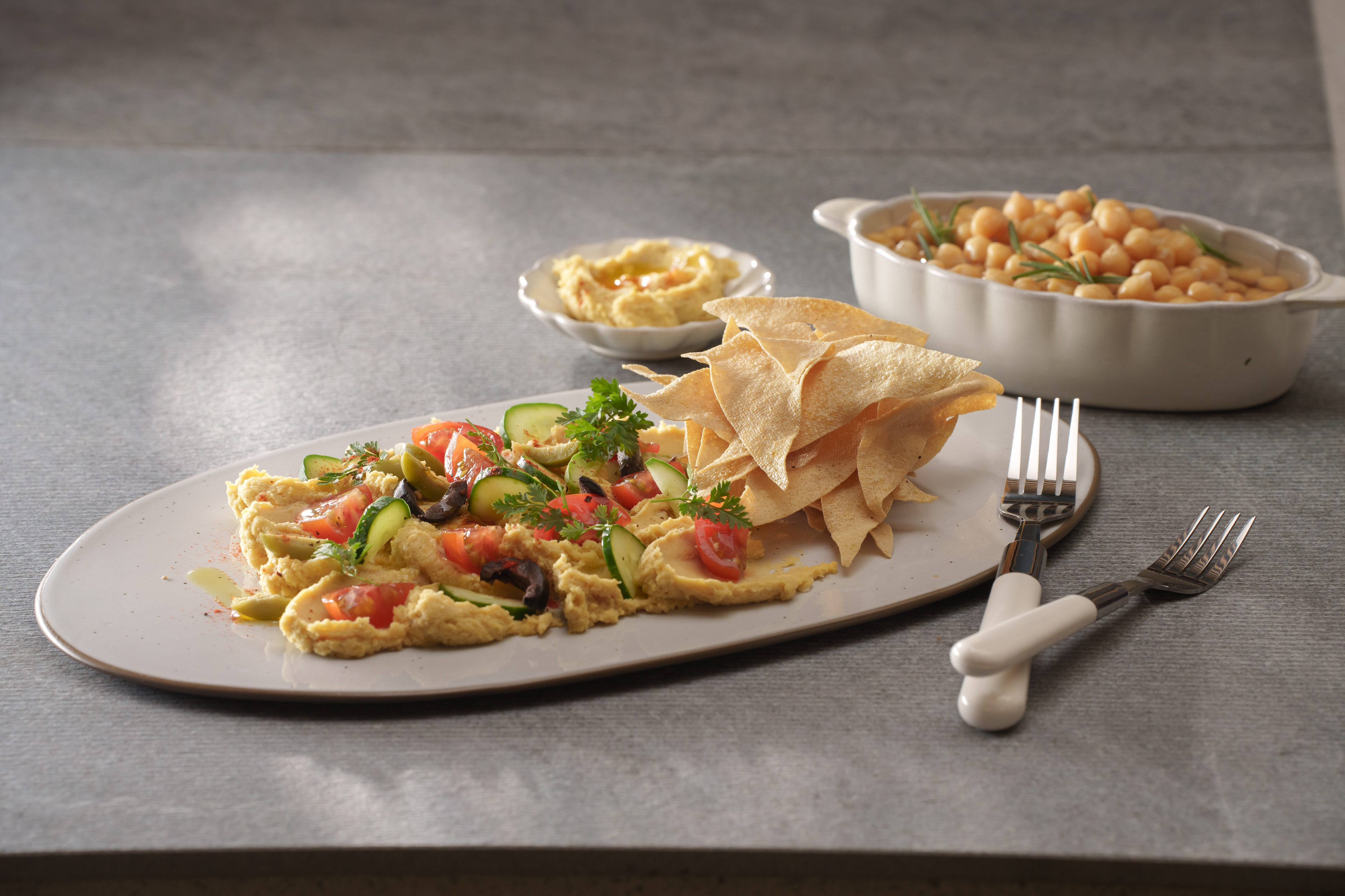 STEP 4. 준비한 재료들로 <후무스와 포두부 나초> 완성시키기
