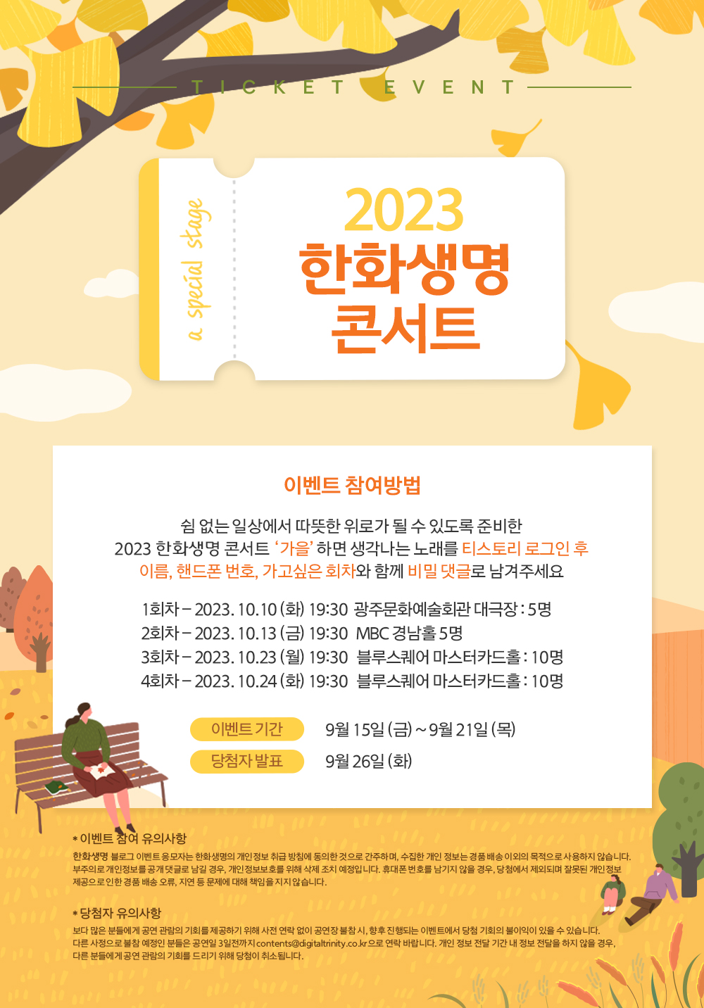 지금 2023 한화생명 콘서트 ‘가을 편지’이벤트에 응모하려면