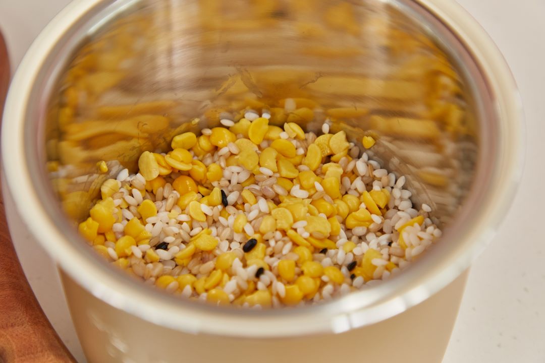 Tip 백미나 잡곡은 30분 정도 불리고, 루피니빈의 경우 4~5시간 정도 불려서 사용해 주세요. 루피니빈은 물에 불리면 약 4배 정도 불어납니다.