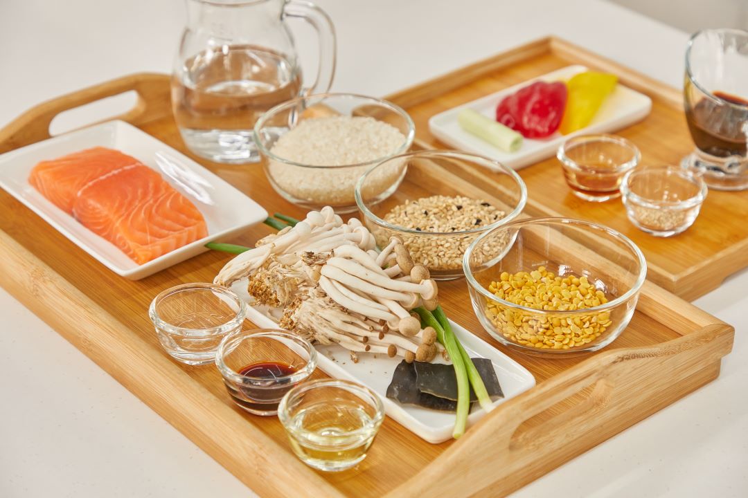 ▶구운 연어 솥밥 재료 소개