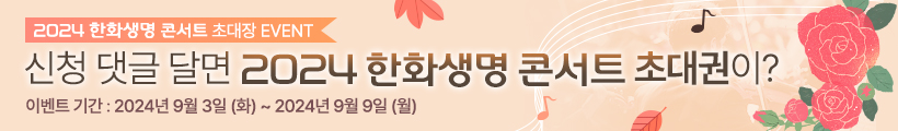본 이벤트를 통해 2024 한화생명 콘서트 1회차 공연에 초대받을 수 있습니다.