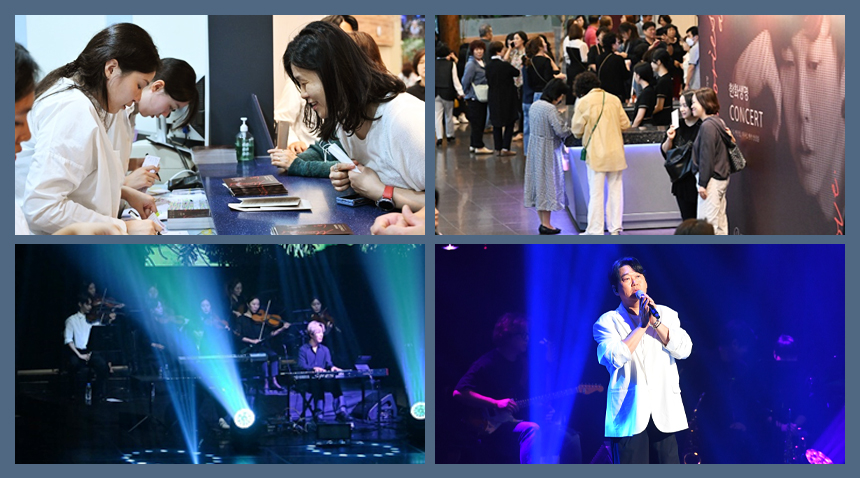 공연은 변진섭 씨의 또 다른 메가 히트곡 ‘너에게로 또다시’로 마무리되었습니다. 관객분들은 애수 가득한 멜로디가 남긴 긴 여운을 느끼면서, 아쉬운 발걸음을 돌려 로비에서 사진도 남기고 이야기도 나누셨어요. <2024 한화생명 콘서트>가 지나간 ‘추억 그리고 사랑’을 떠올리는 자리인 동시에, 앞으로의 ‘추억 그리고 사랑’으로도 남게 되지 않을까 생각해 봅니다.