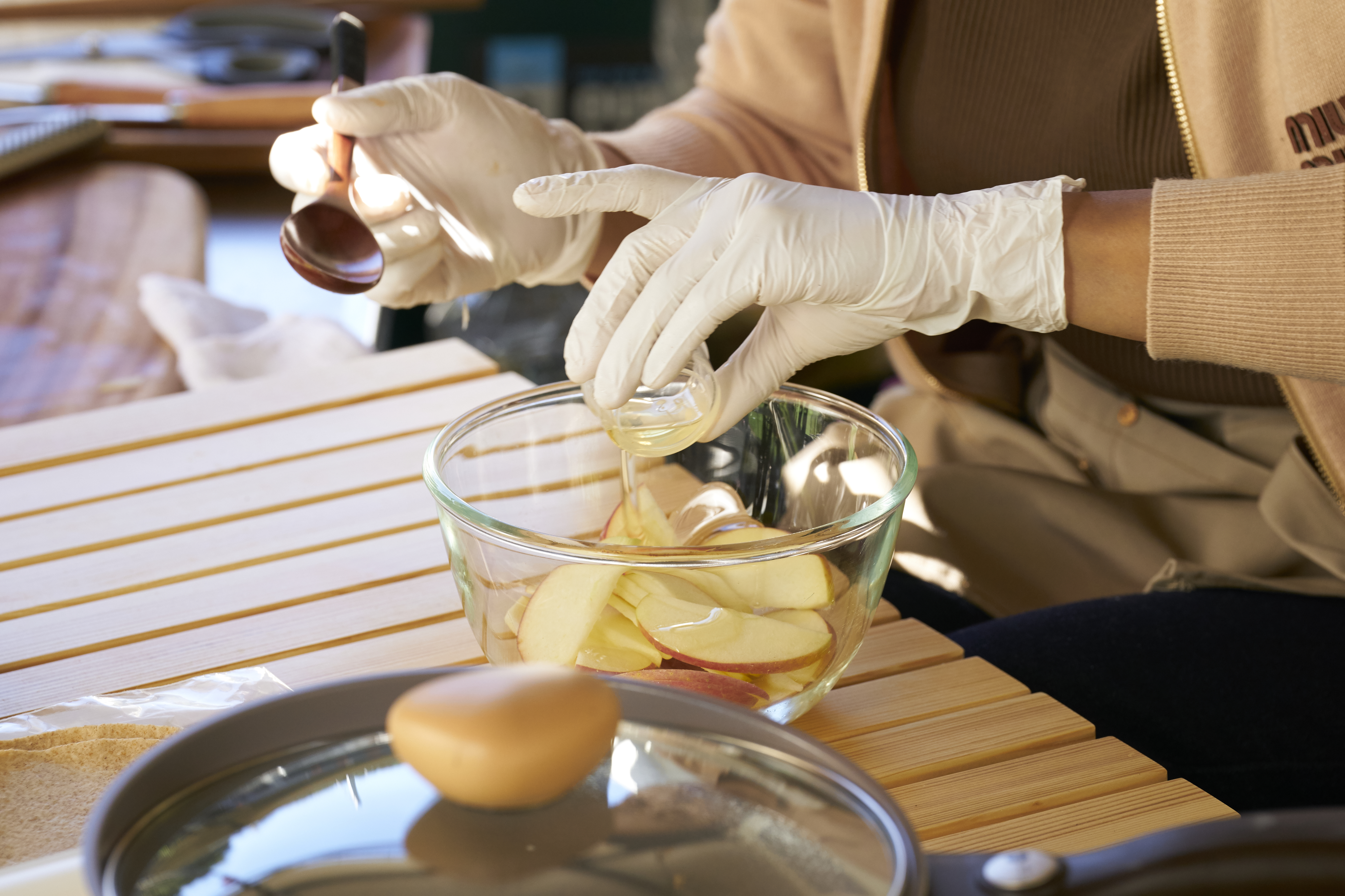 든든한 아침 메뉴도 놓칠 수 없는데요. 아침에 먹는 사과는 금사과라고 할 만큼 건강에 좋은 과일이 바로 사과입니다. 오늘은 사과와 궁합이 아주 좋은 계피를 함께 곁들여 볼게요. 사과의 펙틴이라는 성분은 식이섬유를 함유하고 있어 장을 깨끗이 비우는 데 도움을 주고, 고대 이집트부터 시작된 계피는 혈당 수치 개선에 탁월하다고 하니, 이번 캠핑의 아침 메뉴로 간단하고도 든든하게 즐겨보려고 합니다!