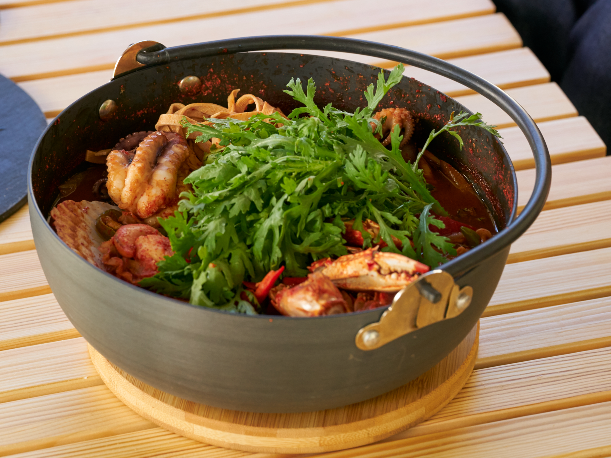 첫 번째 메뉴인 모둠 해물탕에는 꽃게, 각종 해물, 채소 등을 가득 넣어 깊은 맛을 우려내 볼 거예요. 여기에 감칠맛을 더해 줄 특별한 향신료는 바로 강황인데요. 강황의 노란색은 커큐민 성분을 함유하고 있어 염증 물질을 유발하는 효소 생성을 억제하며, 면역력 체계를 강화시켜줍니다. 겨울을 앞둔 이 타이밍, 활력 보충에 제격인 강황을 넣은 해물탕으로 저녁을 준비했습니다!