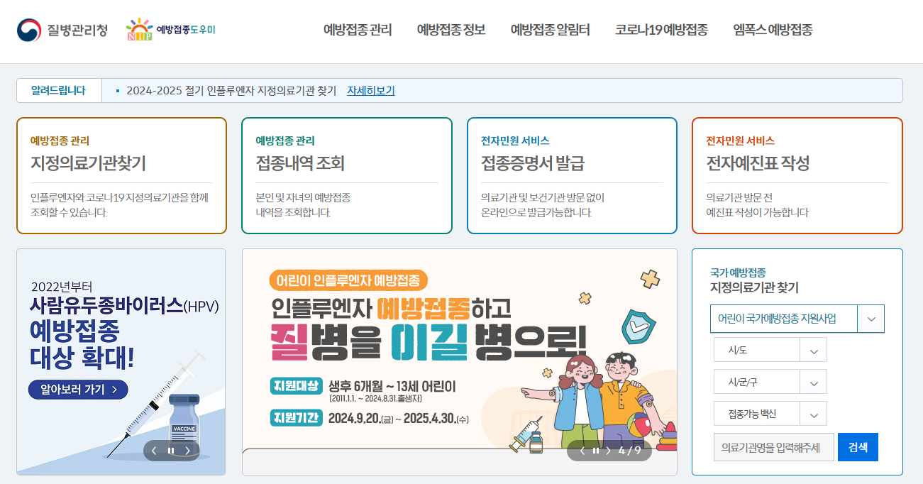 질병관리청이 운영하는 예방접종도우미 홈페이지(https://nip.kdca.go.kr)에서 더 자세한 내용을 보실 수 있습니다.