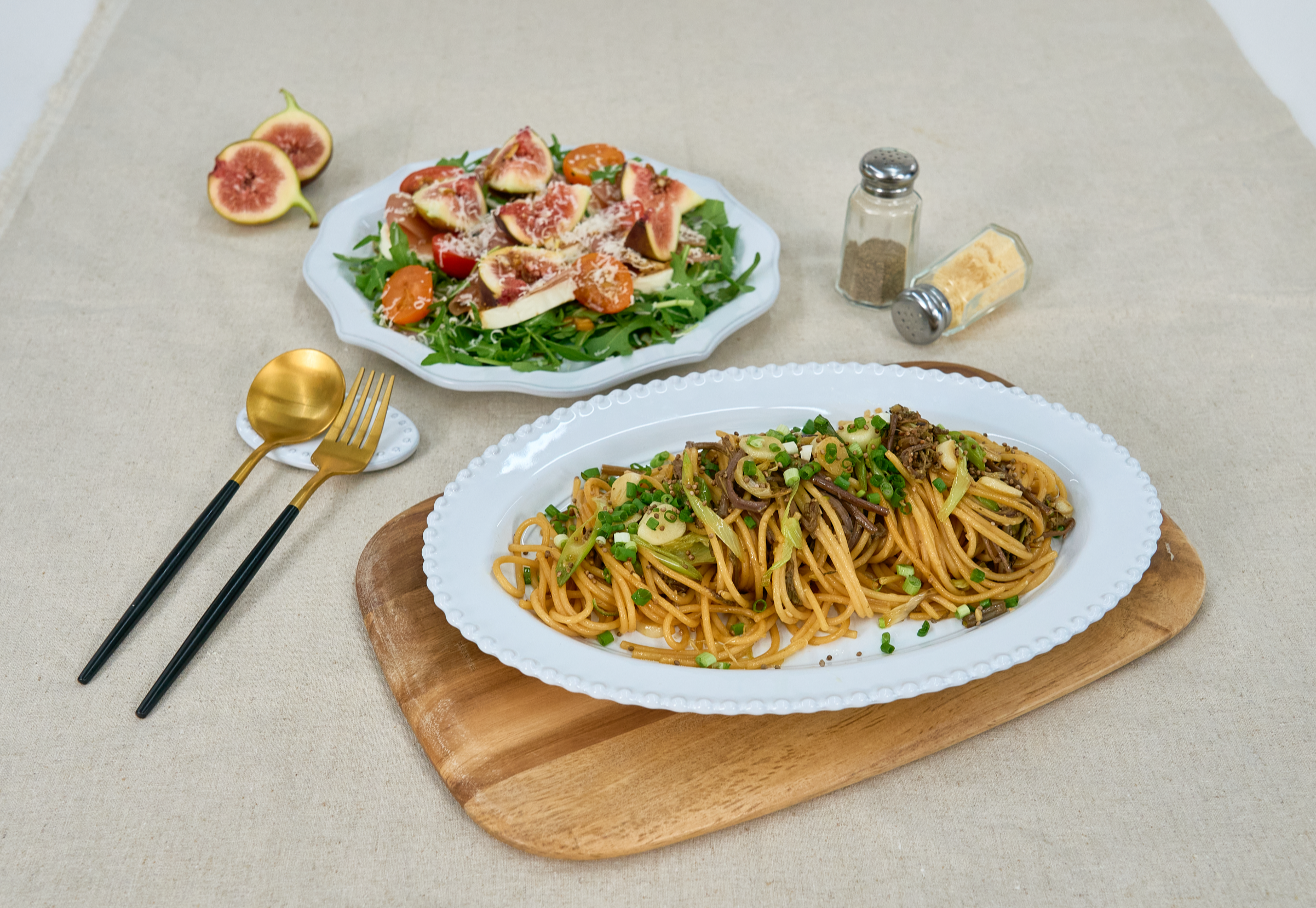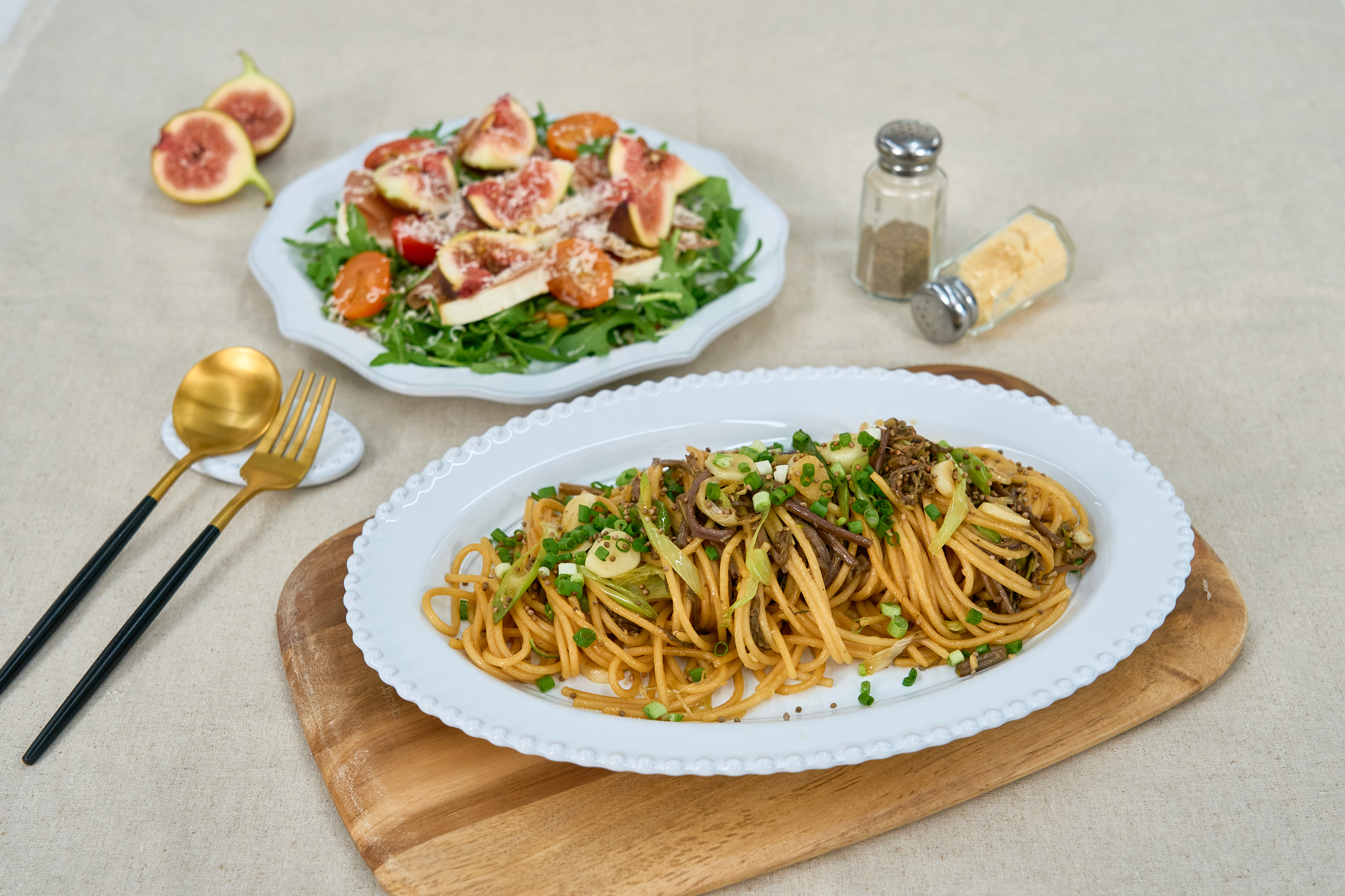 무화과 카프레제 샐러드와 고사리 대파 파스타