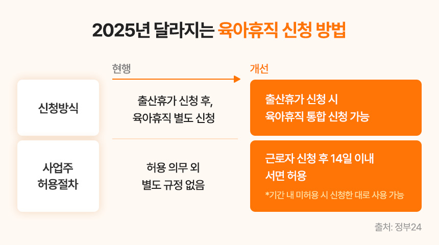 2025년 달라지는 육아휴직 제도를 알아봤습니다. 앞으로의 변화로 부모님들의 금전적 부담은 덜고, 아이와 더 많은 시간을 보낼 수 있는 여유가 확보됐으면 하는 바람인데요. 육아휴직을 고민 중이셨다면, 이번 개편 내용을 확인하여 꼭 활용해 보시면 좋겠습니다.