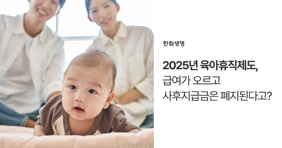 일단 지원 금액이 늘었습니다. 일∙가정 양립 지원 예산은 올해 2.7조원에서 내년 4.4조원으로 대폭 확대됩니다. 제도 핵심은 경제적 부담은 덜어주고 육아휴직을 더 쉽게 사용하도록 제도를 간소화하는 것인데요. 앞으로 달라지는 육아휴직 제도, 놓치지 말고 혜택받으실 수 있도록 한화생명이 챙겨드립니다.