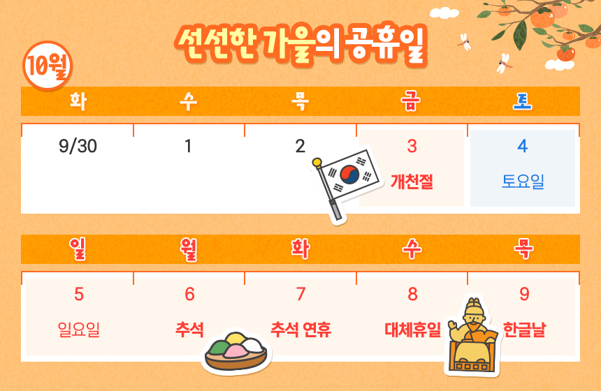 l 10월 8일(수): 대체공휴일(추석 연휴)
