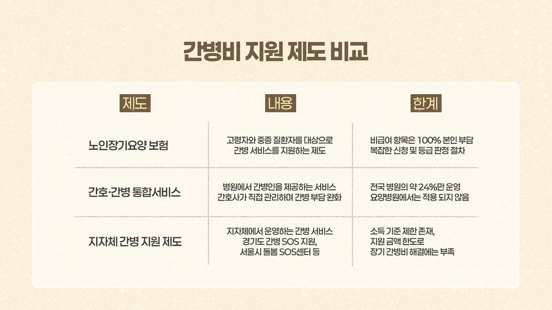 간병 문제는 단순히 경제적 부담을 넘어 가족 사이의 정서적, 관계적 갈등을 동반하여 불화와 갈등의 씨앗이 될 수도 있습니다.