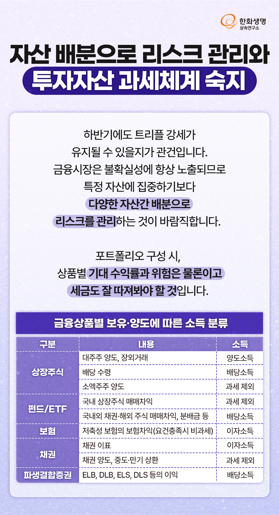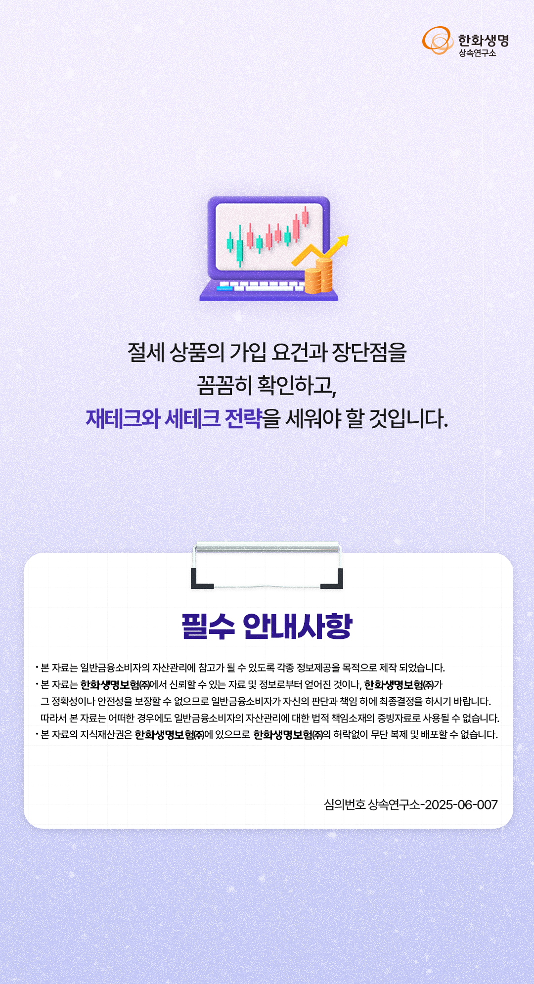 상속연구소 절세상품을 활용한 재테크와 세테크 (feat. 한화생명 상속연구소) 라이프앤톡 2025. 6. 27. 13:23 더 많은 정보는 한화생명 상속연구소 홈페이지에서! 👇 https://familyoffice.hanwhalife.com/ 공유하기 게시글 관리 한화생명 블로그 Life & Talk 저작자표시 (새창열림) '상속연구소' 다른 글 보러 가기 주택가격 초강세 배경과 6.27 대책 下 시장 대응 전략(feat. 한화생명 상속연구소) 내가 가입한 연금, 상속은 어떻게 될까? (feat. 한화생명 상속연구소) 자녀의 가업 승계를 위한 사전 준비 (feat. 한화생명 상속연구소) LLC 법인 설립을 활용한 미국 부동산 투자 절세전략 (feat. 한화생명 상속연구소)