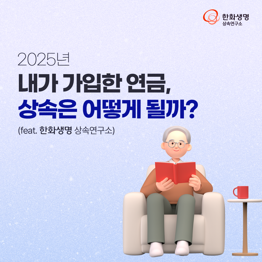 상속연구소 내가 가입한 연금, 상속은 어떻게 될까? (feat. 한화생명 상속연구소) 라이프앤톡 2025. 7. 11. 13:10 더 많은 정보는 한화생명 상속연구소 홈페이지에서! 👇 https://familyoffice.hanwhalife.com/ 공유하기 게시글 관리 한화생명 블로그 Life & Talk 저작자표시 (새창열림) '상속연구소' 다른 글 보러 가기 가상자산 거래 유형 A to Z : 과세 실전 매뉴얼 (feat. 한화생명 상속연구소) 주택가격 초강세 배경과 6.27 대책 下 시장 대응 전략(feat. 한화생명 상속연구소) 절세상품을 활용한 재테크와 세테크 (feat. 한화생명 상속연구소) 자녀의 가업 승계를 위한 사전 준비 (feat. 한화생명 상속연구소)