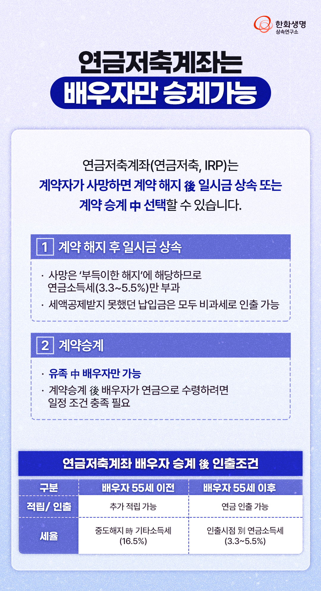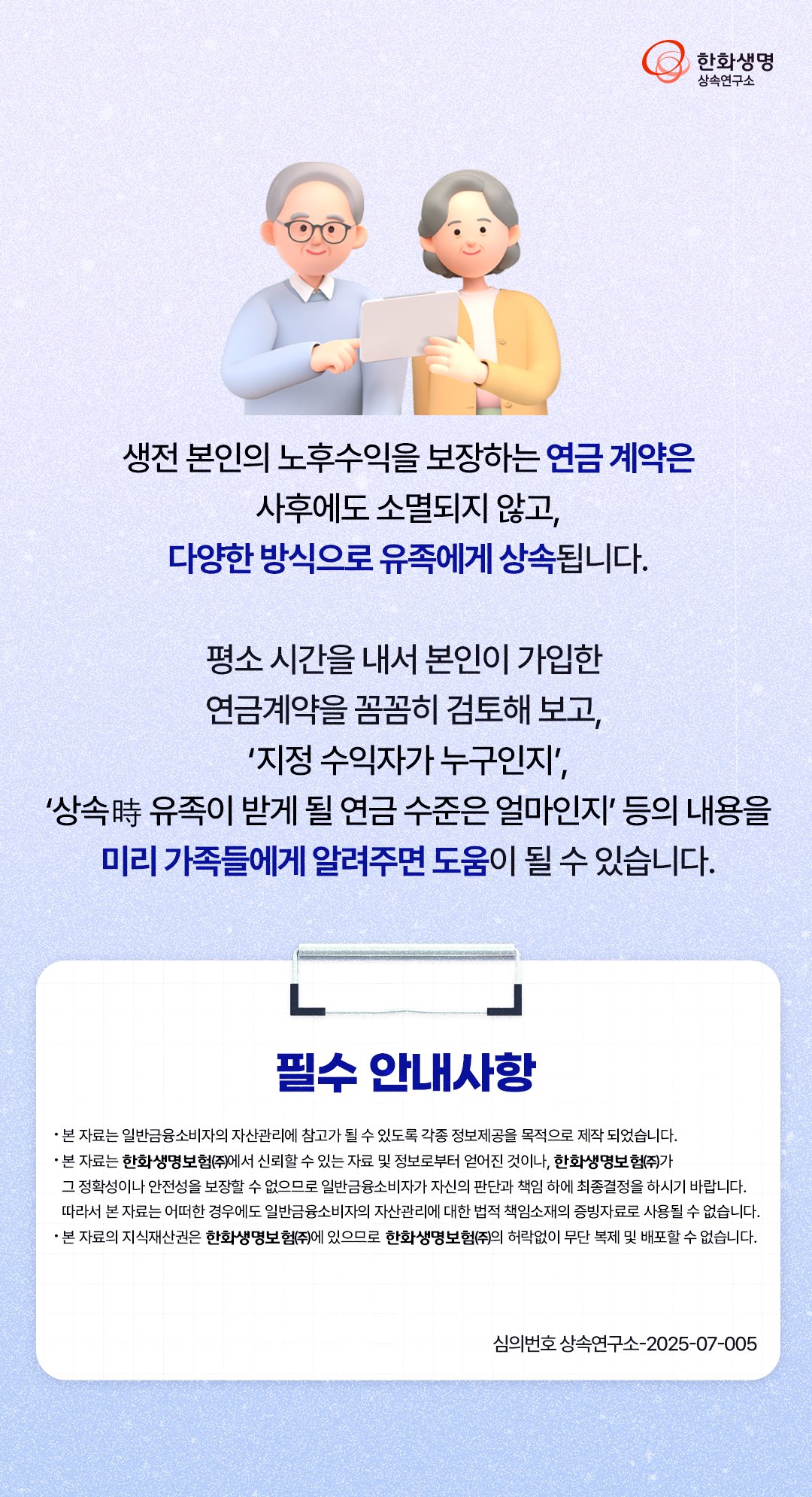 상속연구소 내가 가입한 연금, 상속은 어떻게 될까? (feat. 한화생명 상속연구소) 라이프앤톡 2025. 7. 11. 13:10 더 많은 정보는 한화생명 상속연구소 홈페이지에서! 👇 https://familyoffice.hanwhalife.com/ 공유하기 게시글 관리 한화생명 블로그 Life & Talk 저작자표시 (새창열림) '상속연구소' 다른 글 보러 가기 가상자산 거래 유형 A to Z : 과세 실전 매뉴얼 (feat. 한화생명 상속연구소) 주택가격 초강세 배경과 6.27 대책 下 시장 대응 전략(feat. 한화생명 상속연구소) 절세상품을 활용한 재테크와 세테크 (feat. 한화생명 상속연구소) 자녀의 가업 승계를 위한 사전 준비 (feat. 한화생명 상속연구소)