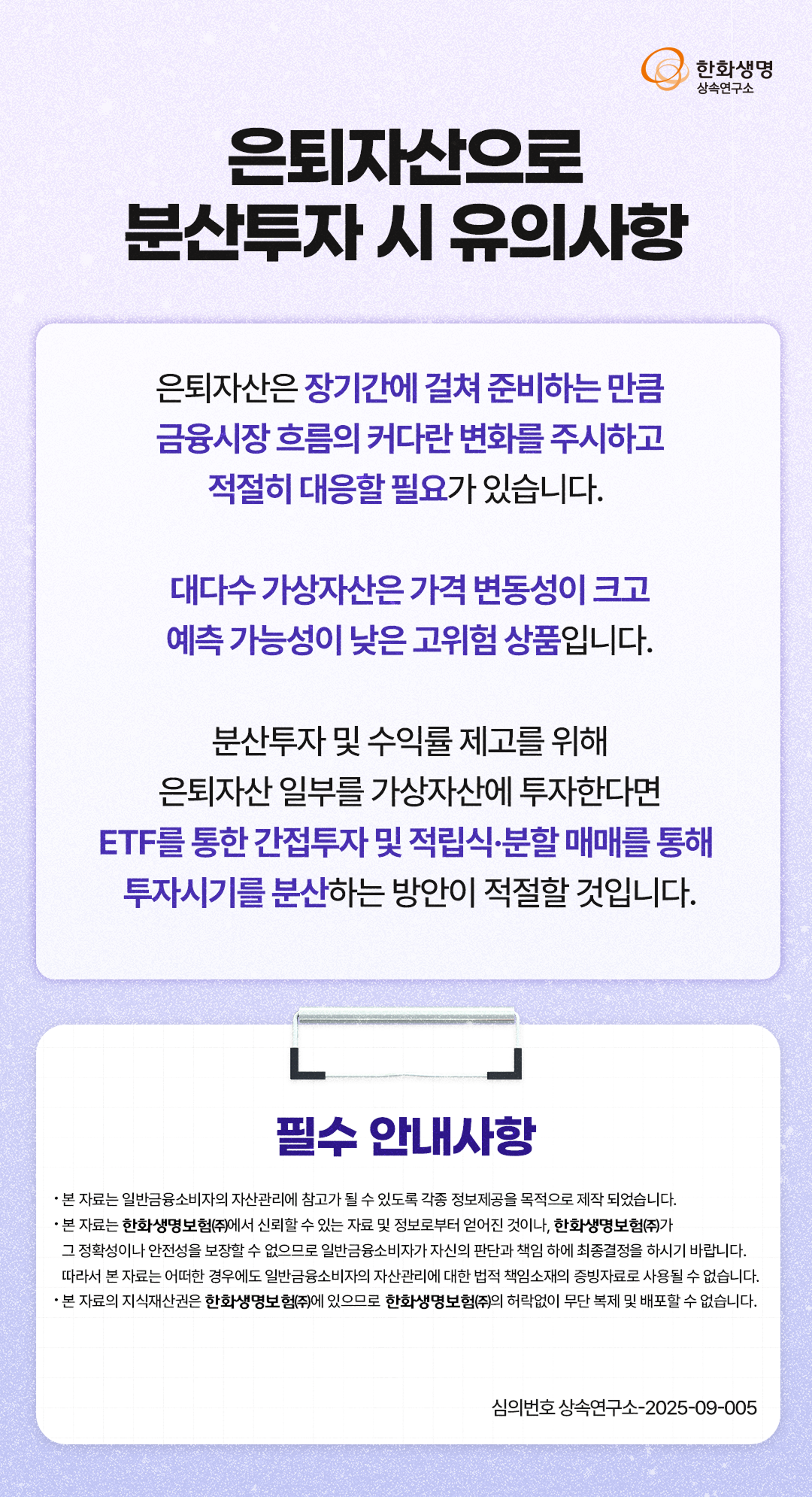 상속연구소 연기금의 대체투자 확대 움직임과 시사점 (feat. 한화생명 상속연구소) 라이프앤톡 2025. 9. 12. 10:29 더 많은 정보는 한화생명 상속연구소 홈페이지에서! 👇 https://familyoffice.hanwhalife.com/ 공유하기 게시글 관리 한화생명 블로그 Life & Talk 저작자표시 (새창열림) '상속연구소' 다른 글 보러 가기 노후자금 활용, 사망보험금 유동화 시행(feat. 한화생명 상속연구소) 누구에게 물려주지? 싱글&딩크를 위한 상속·증여 플랜 (feat. 한화생명 상속연구소) 미래를 든든하게, 보험금청구권 신탁 알아보기 가상자산 거래 유형 A to Z : 과세 실전 매뉴얼 (feat. 한화생명 상속연구소)