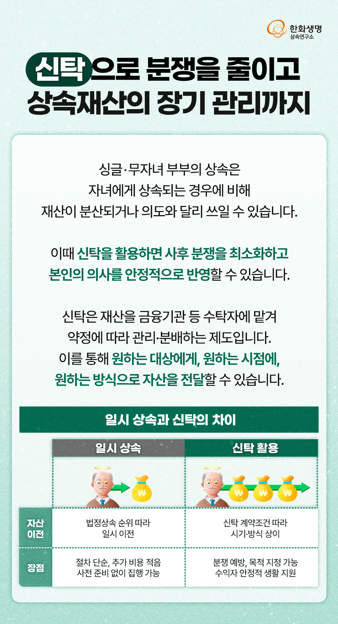 상속연구소 누구에게 물려주지? 싱글&딩크를 위한 상속·증여 플랜 (feat. 한화생명 상속연구소) 라이프앤톡 2025. 9. 19. 09:37 더 많은 정보는 한화생명 상속연구소 홈페이지에서! 👇 https://familyoffice.hanwhalife.com/ 공유하기 게시글 관리 한화생명 블로그 Life & Talk 저작자표시 (새창열림) '상속연구소' 다른 글 보러 가기 2025년, '10.15 부동산 대책' 시장 접근포인트(feat. 한화생명 상속연구소) 노후자금 활용, 사망보험금 유동화 시행(feat. 한화생명 상속연구소) 연기금의 대체투자 확대 움직임과 시사점 (feat. 한화생명 상속연구소) 미래를 든든하게, 보험금청구권 신탁 알아보기 (feat. 한화생명 상속연구소)
