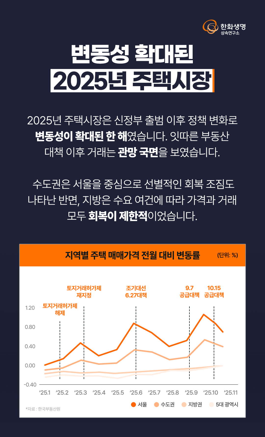 상속연구소 2026년 주택시장 전망과 투자 접근 포인트(feat. 한화생명 상속연구소) 라이프앤톡 2026. 1. 16. 11:09 더 많은 정보는 한화생명 상속연구소 홈페이지에서! 👇 https://familyoffice.hanwhalife.com/ 공유하기 게시글 관리 한화생명 블로그 Life & Talk 저작자표시 (새창열림) '상속연구소' 다른 글 보러 가기 2026년 역대급 모험자본 투입의 해, 투자전략은?(feat. 한화생명 상속연구소) 고배당 분리과세, 세금 전략의 새로운 선택(feat. 한화생명 상속연구소) 2026년 금융시장 전망과 자산배분 방안(feat. 한화생명 상속연구소) 자산을 연금으로 바꾸는 하이브리드 노후 준비(feat. 한화생명 상속연구소)