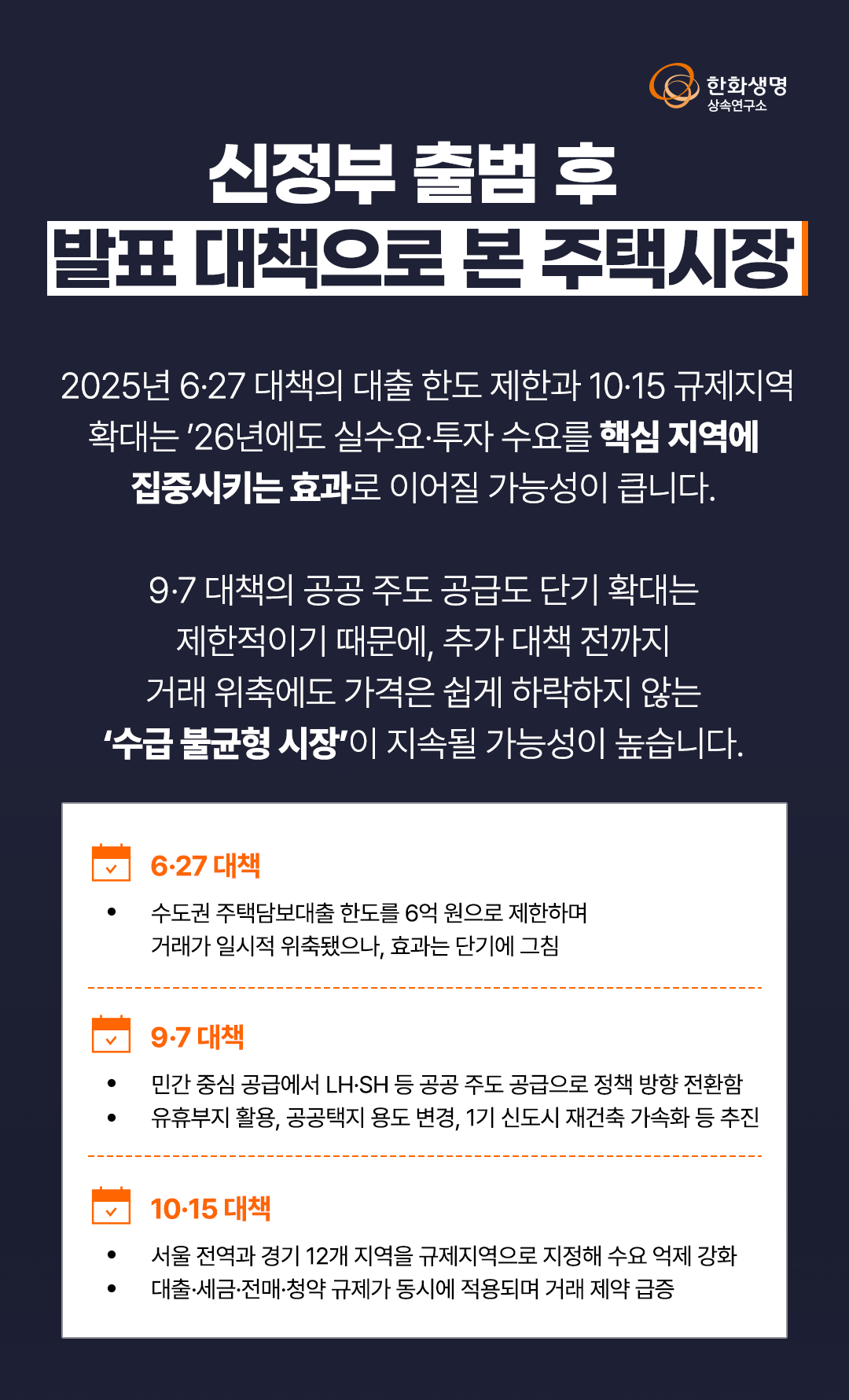 상속연구소 2026년 주택시장 전망과 투자 접근 포인트(feat. 한화생명 상속연구소) 라이프앤톡 2026. 1. 16. 11:09 더 많은 정보는 한화생명 상속연구소 홈페이지에서! 👇 https://familyoffice.hanwhalife.com/ 공유하기 게시글 관리 한화생명 블로그 Life & Talk 저작자표시 (새창열림) '상속연구소' 다른 글 보러 가기 2026년 역대급 모험자본 투입의 해, 투자전략은?(feat. 한화생명 상속연구소) 고배당 분리과세, 세금 전략의 새로운 선택(feat. 한화생명 상속연구소) 2026년 금융시장 전망과 자산배분 방안(feat. 한화생명 상속연구소) 자산을 연금으로 바꾸는 하이브리드 노후 준비(feat. 한화생명 상속연구소)