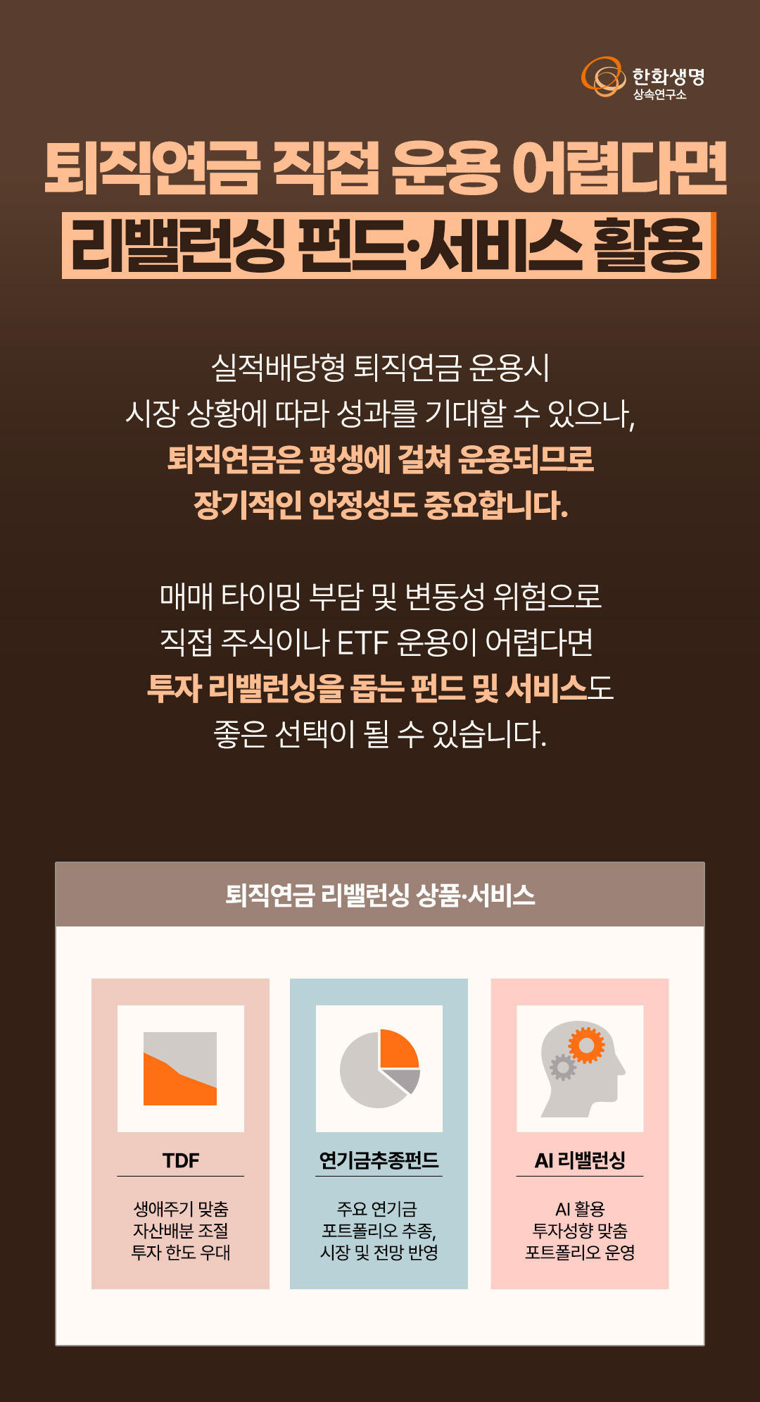 상속연구소 투자 시대, 퇴직연금도 챙기셨나요(feat. 한화생명 상속연구소) 라이프앤톡 2026. 3. 12. 16:52 더 많은 정보는 한화생명 상속연구소 홈페이지에서! 👇 https://familyoffice.hanwhalife.com/ 공유하기 게시글 관리 한화생명 블로그 Life & Talk 저작자표시 (새창열림) '상속연구소' 다른 글 보러 가기 부동산 임대사업자, 법인 전환의 효과와 손익분기점(feat. 한화생명 상속연구소) K-증시 변동성 장세, 리스크 관리와 투자 전략(feat. 한화생명 상속연구소) 3040 자산가의 상속·증여 트렌드(feat. 한화생명 상속연구소) 2026년 역대급 모험자본 투입의 해, 투자전략은?(feat. 한화생명 상속연구소)